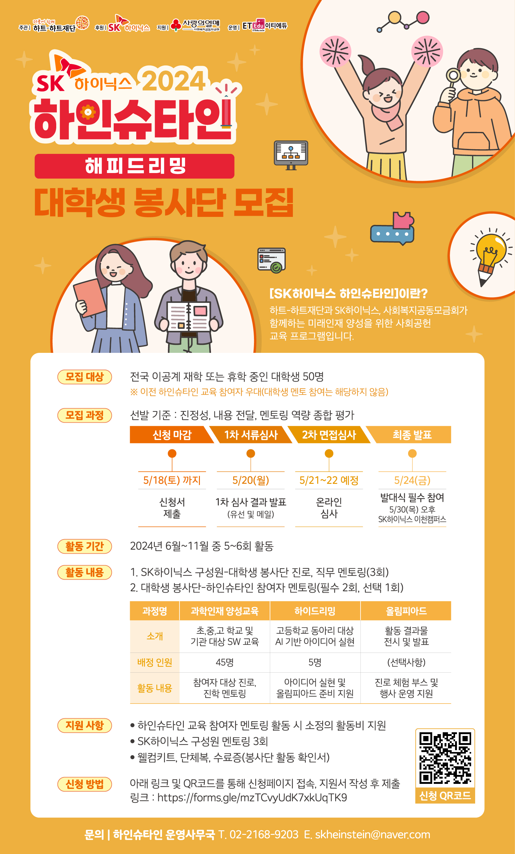 - [SK하이닉스] 2024 하인슈타인 대학생 봉사단 모집(~5/18 까지)
