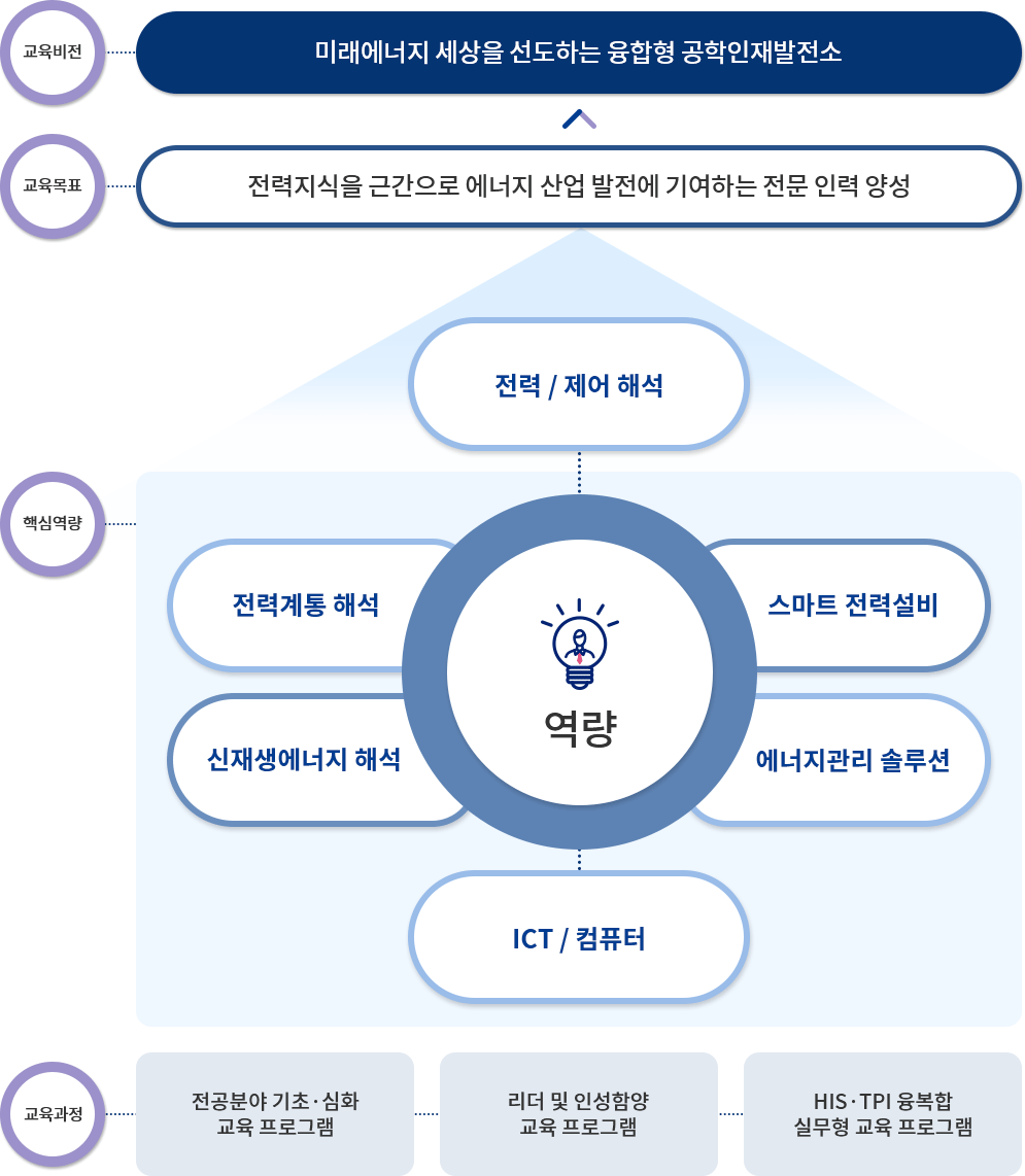 전기공학전공는 이론과 실무를 겸비한 하드웨어 (H/W) & 소프트웨어(S/W) 통합형 엔지니어를 양성하고 전력송배전 신기술, 스마트전력설비, 신재생에너지, 에너지관리솔루션 등 전공 분야의 특성화된 교육 능력을 갖춘 인재 양성을 교육목표를 둔다.
