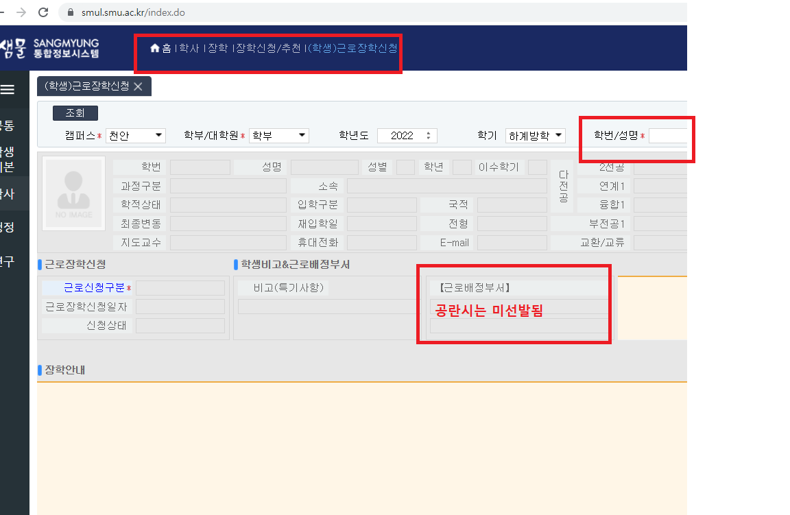 천안 [등록/장학] 2025학년도 2학기 학기 중 교내근로 배정 및 근로장학 신청서 제출 안내 -